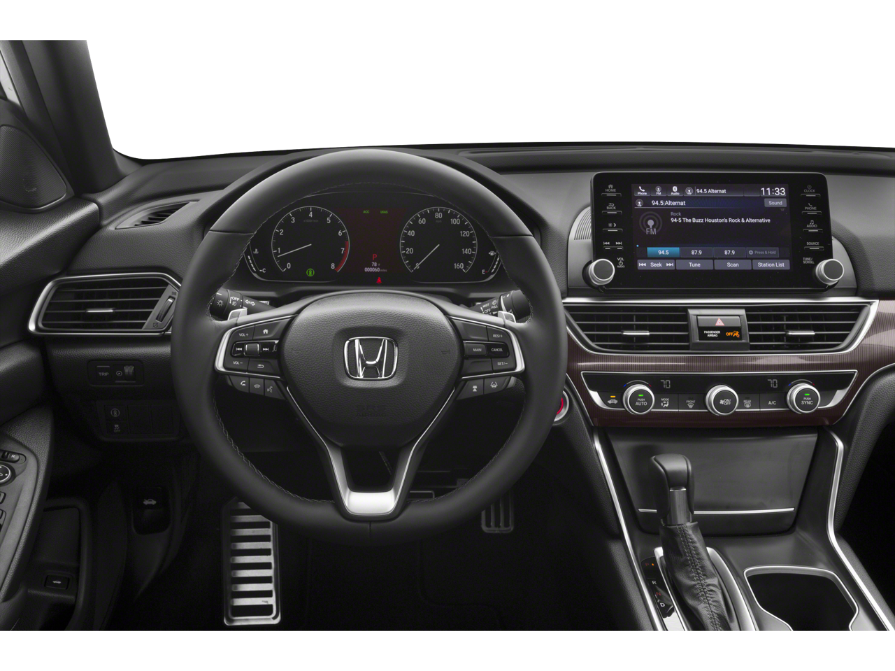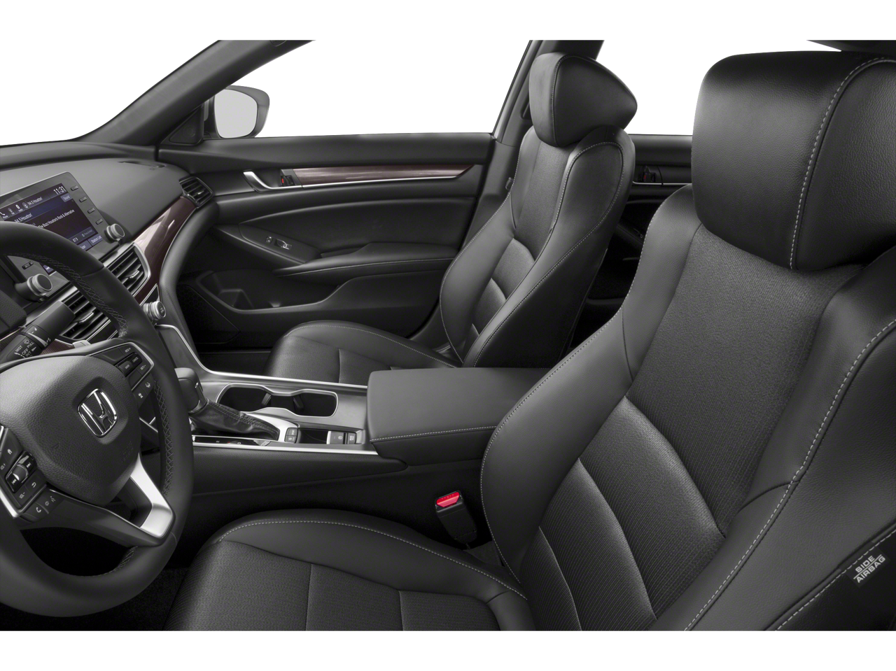 The interior of this Accord is thoughtfully designed, with features that cater to your comfort and convenience. Dual-zone automatic climate control, a leather-wrapped steering wheel, and a 180-Watt AM/FM audio system with Apple CarPlay and Android Auto integration ensure you'll enjoy every moment behind the wheel.