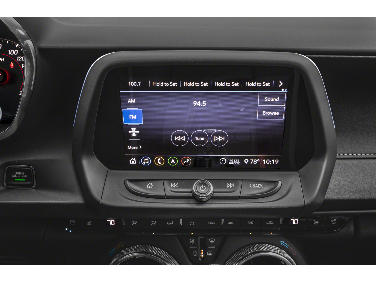 • Audio system, Chevrolet Infotainment 3 Plus system, 8" diagonal HD color touchscreen, AM/FM stereo Bluetooth® audio streaming for 2 active devices, Apple CarPlay and Android Auto capable, voice recognition, in-vehicle apps, cloud connected personalization for select infotainment and vehicle settings. Subscription required for enhanced and connected services after trial period.