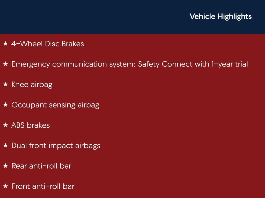 - Emergency SOS Capable Safety Connect with 1-year trial vehicle integrated emergency SOS system