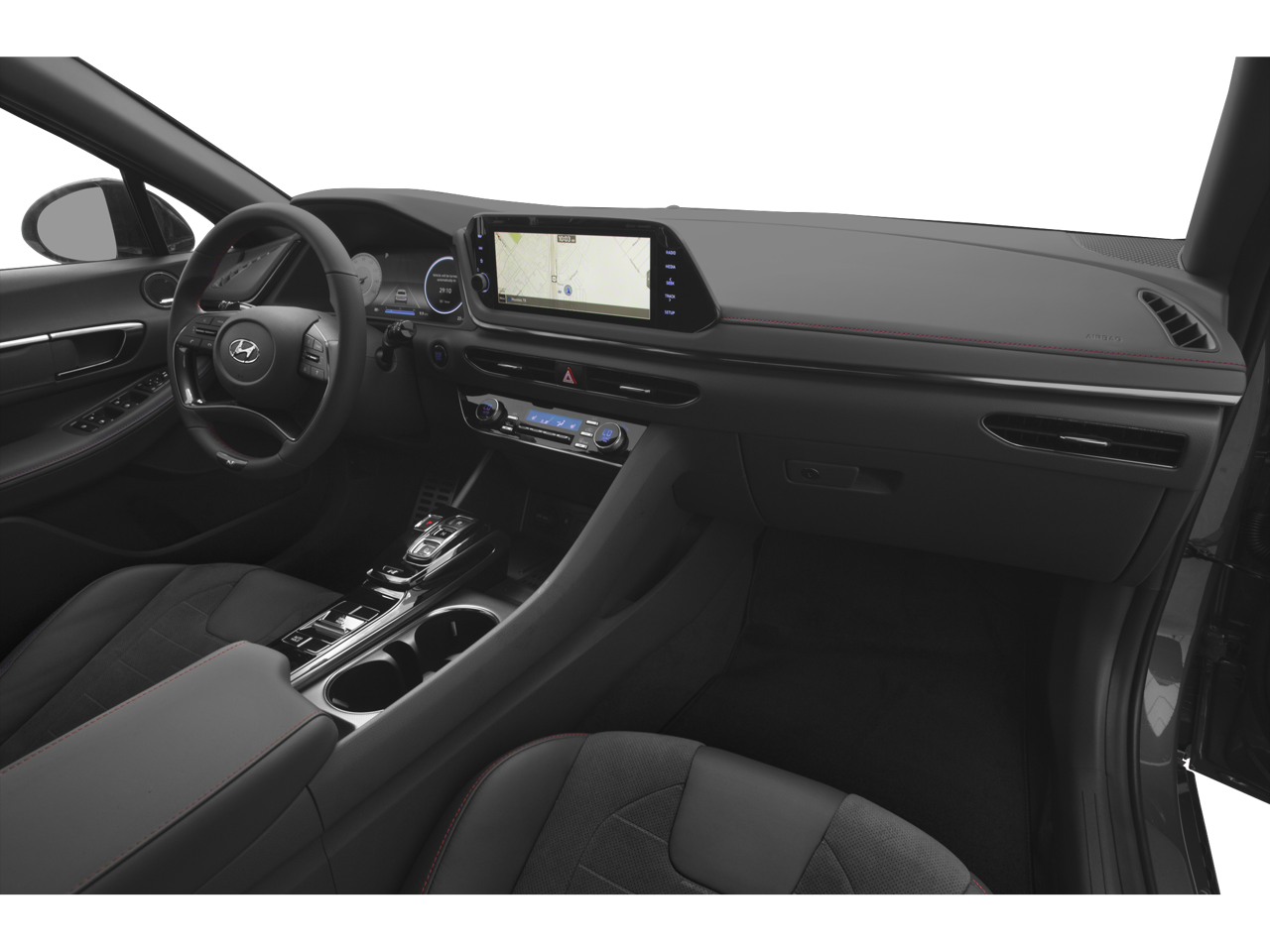 *Local Trade, Black w/Leather Seating Surfaces, 12 Speakers, 4-Wheel Disc Brakes, ABS brakes, AM/FM radio: SiriusXM, Apple CarPlay & Android Auto, Emergency communication system: Blue Link Connected Car Service (3-year complimentary subscription), Leather steering wheel, Navigation System, Power moonroof, Radio: AM/FM/MP3/HD/SiriusXM Display Audio w/Nav, Wheels: N Unique 19 x 8.0J Aluminum Alloy.