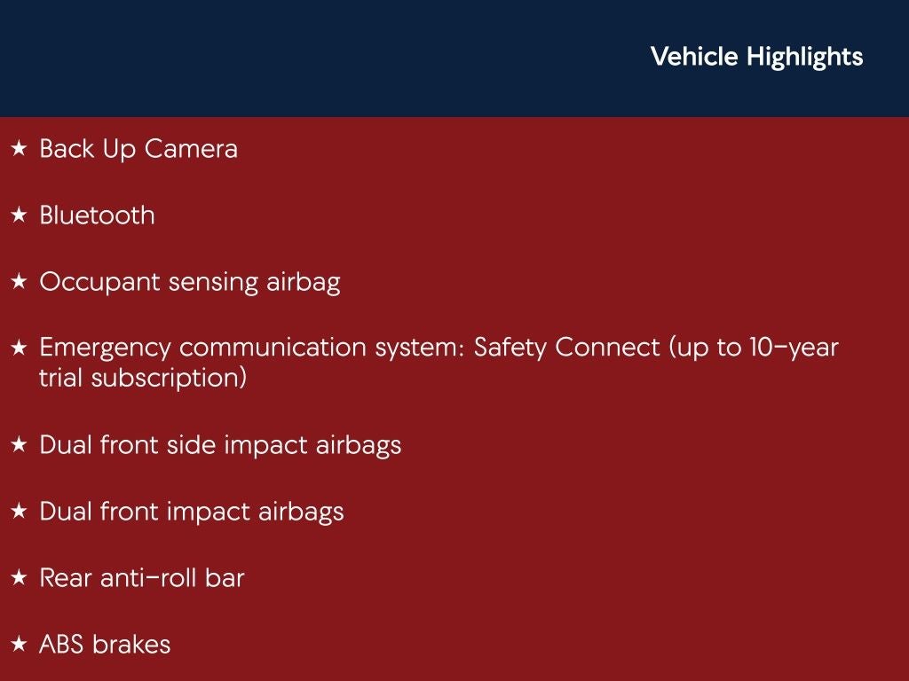 - Emergency SOS Capable Safety Connect (up to 10-year trial subscription) vehicle integrated emergency SOS system