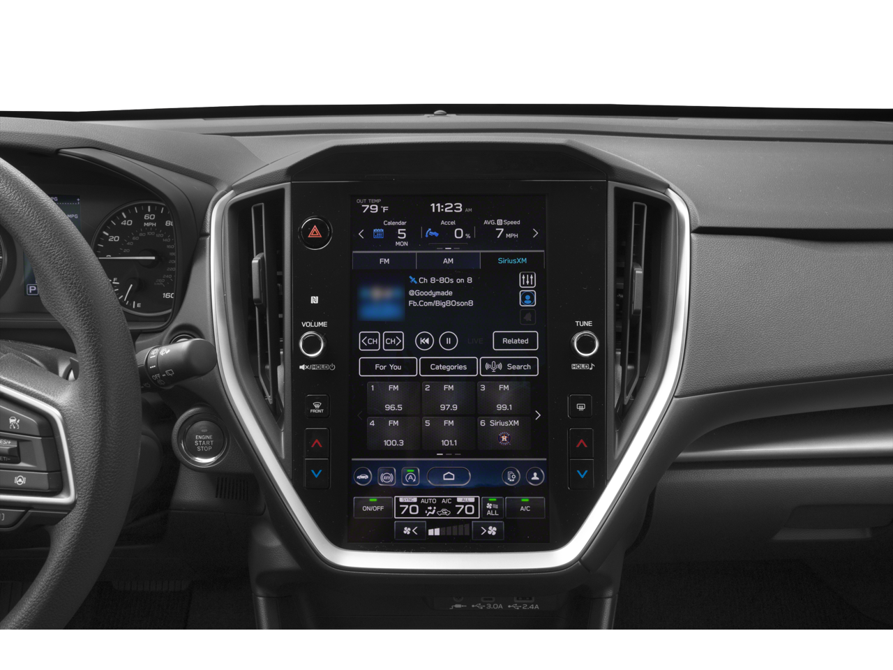 - Radio: Subaru STARLINK 11.6" Multimedia Plus Sys -inc: valet mode, AM/FM stereo, HD Radio, multi-touch gesture high resolution display screen, voice activated controls, Bluetooth® audio streaming and hands-free phone connectivity, Bluetooth® hands-free SMS text messaging connectivity, iPod control capability, rear-vision camera display, SiriusXM All Access radio (4 months free trial/subscription required after), SiriusXM Travel Link (4 months free trial/subscription required after), smartphone integration: Android Auto, Apple CarPlay, STARLINK cloud applications, 6 speakers, 3.5mm auxiliary input jack, illuminated/dual USB A and C input charge ports, roof mounted antenna and audio/satellite connected services