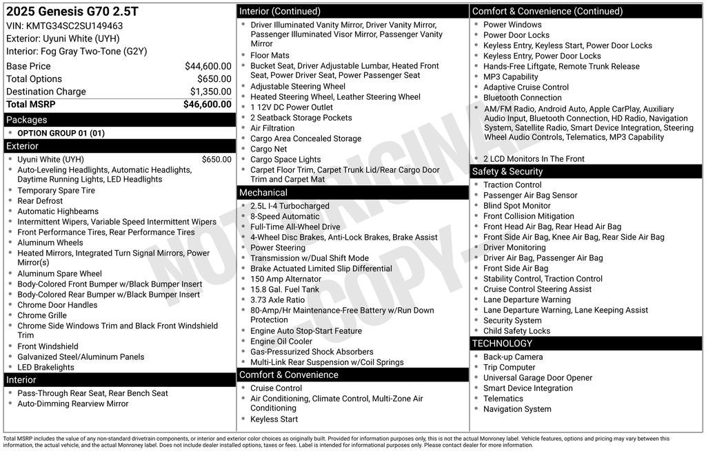 2025 Genesis G70 2.5T
