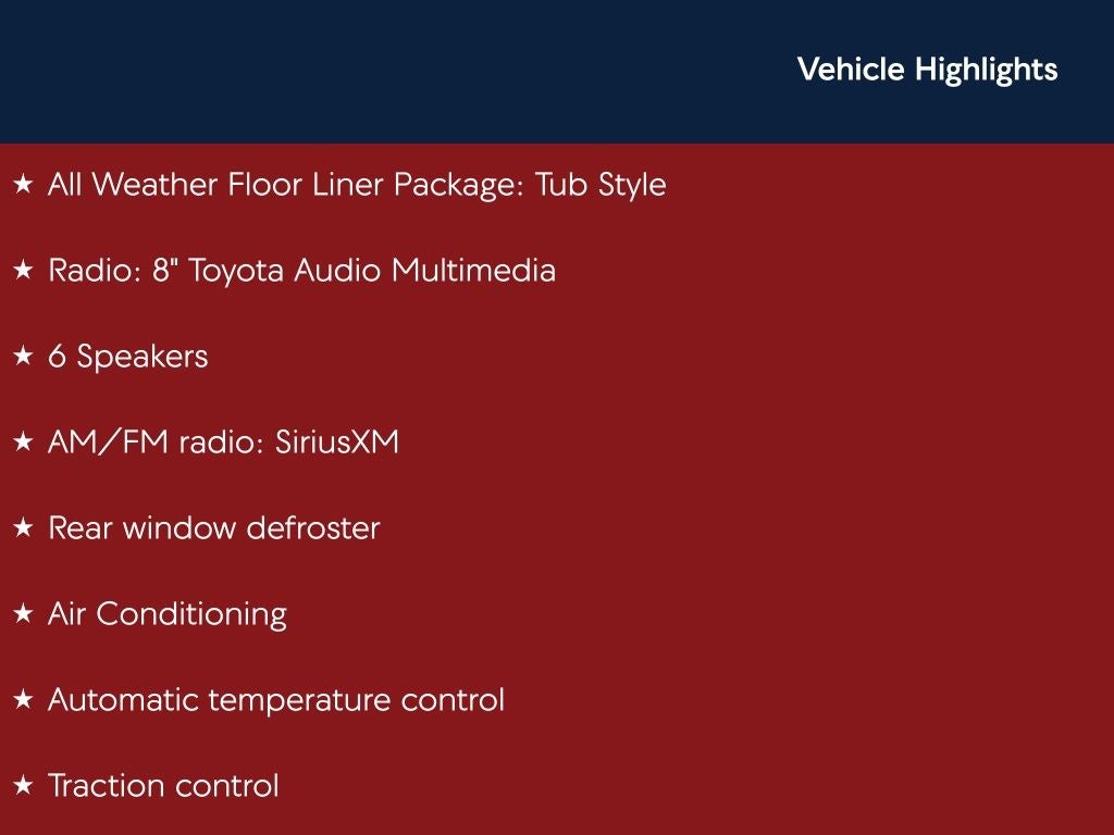 - Radio: 8" Toyota Audio Multimedia