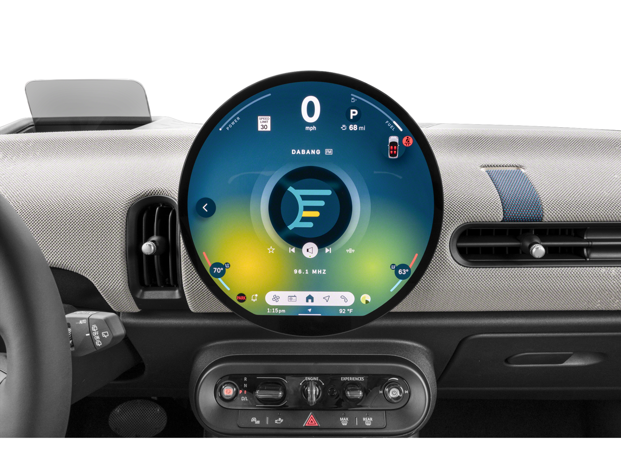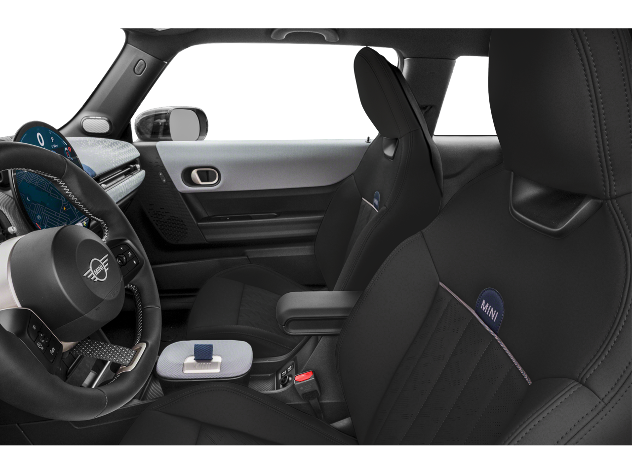 Step inside the spacious cabin and you'll be greeted by the high-quality Vescin/Cloth upholstery, Heated Front Seats, and the advanced MINI Interaction Unit, which seamlessly integrates your smartphone and provides intuitive access to navigation, entertainment, and vehicle settings. The MINI Head-Up Display and MINI Assist eCall further enhance the driving experience, keeping you informed and connected at all times.